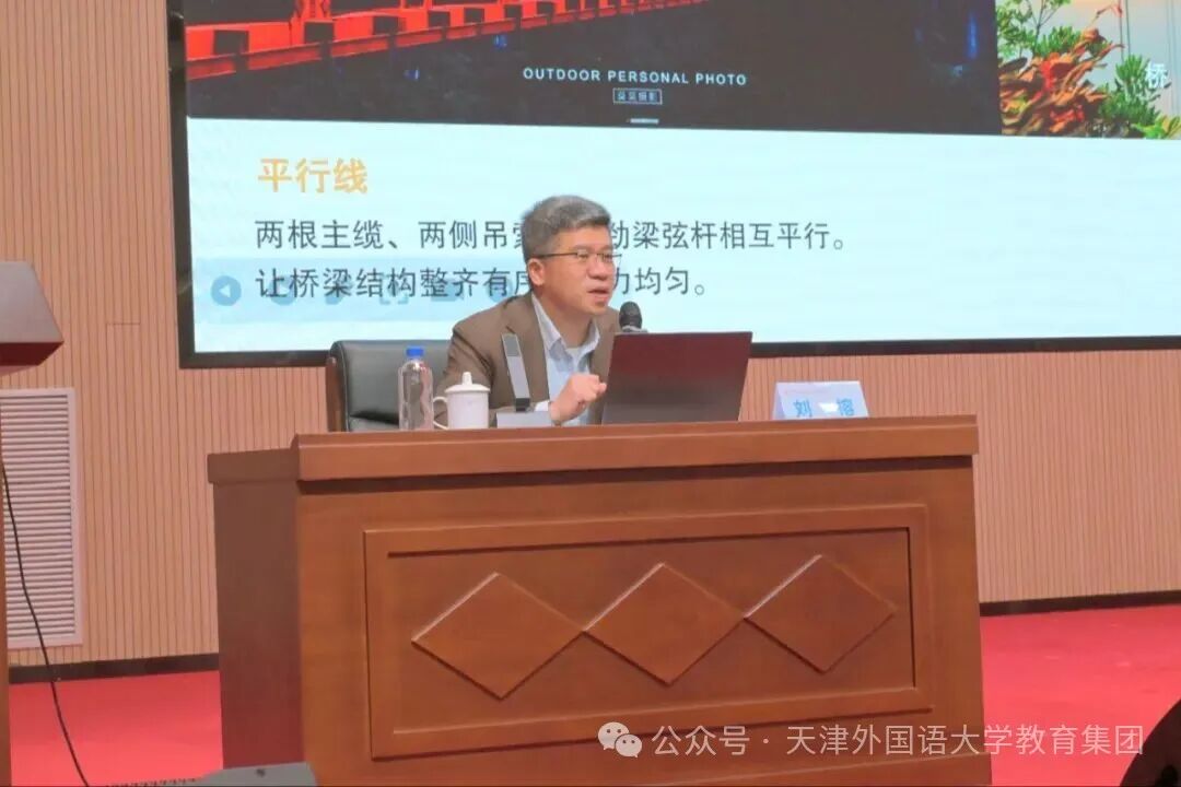 4月10日下午,天津外国语大学教育集团“青春领航大讲堂”系列讲座第三场在华苑小外报告厅举行。华苑小外七八年级全体师生与团泊小外390余名师生共同聆听了桥梁大师刘榕先生带来的精彩报告《一座桥,一张世界名片——矮寨大桥探秘》。在云端天桥的传奇故事中,一同感受中国桥梁的硬核实力与创新力量。